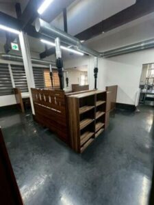 ・写真の什器は撤去予定、床・壁・天井が残ります。